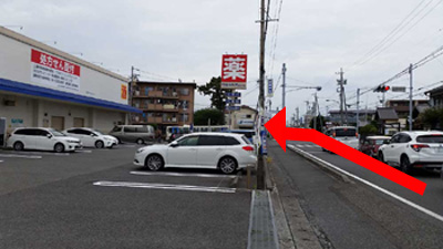 つきあたり10m手前を左折 入り口は少々わかりずらいです。 ※駐車場は舗装されていません。 |